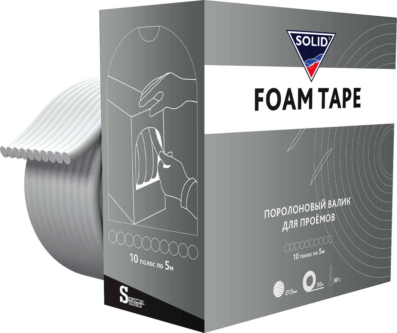 13.13500 SOLID 1350 FOAM TAPE Валики для проёмов, D 13мм*50м (10шт*5м)