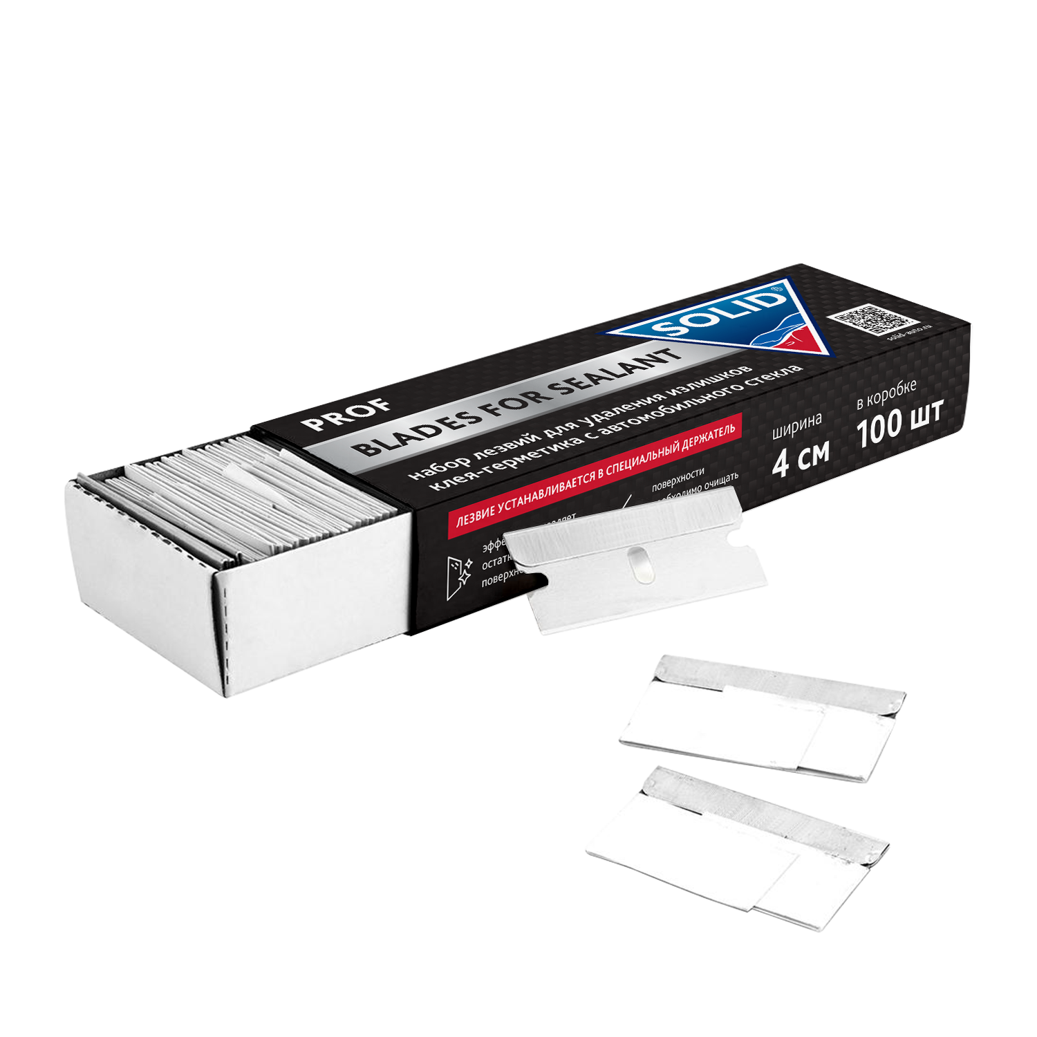 0100.10.10 SOLID PROF BLADES for SEALANT - набор лезвий для удаления автомобильного клея-герметика 4см (100шт.)